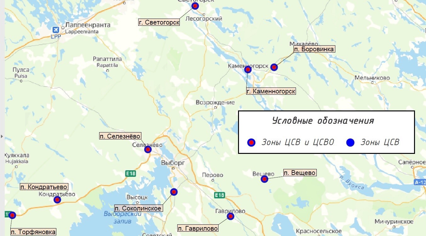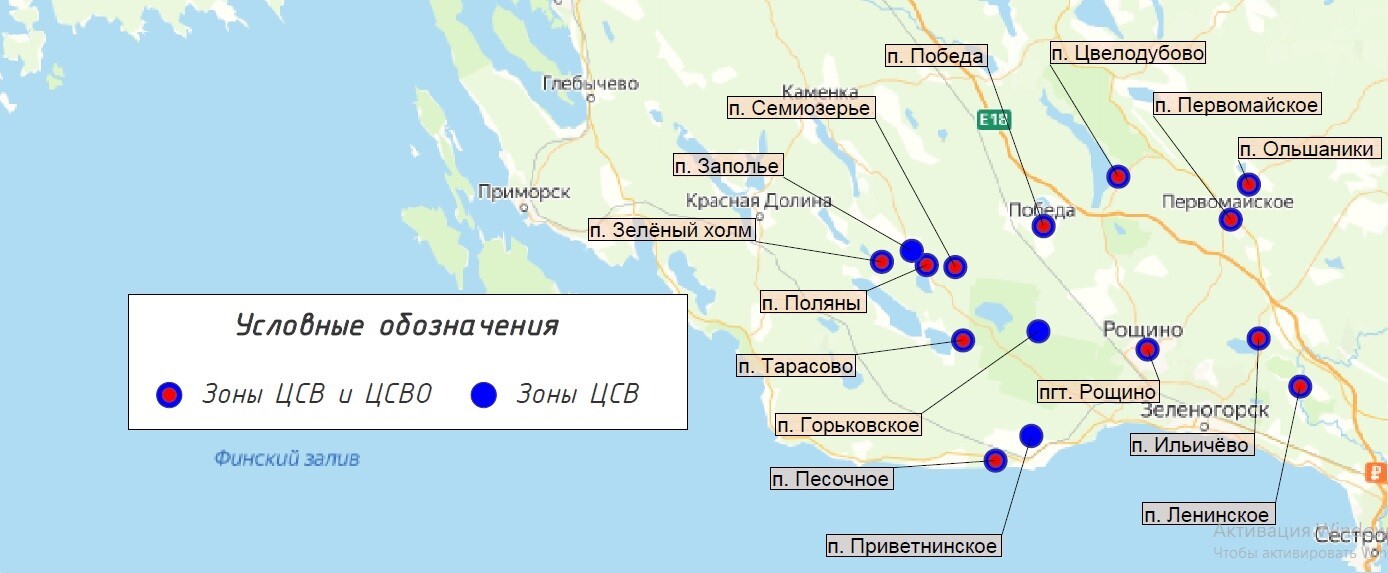 Рисунок – 3. Расположение систем ВС и ВО в Выборгском районе.